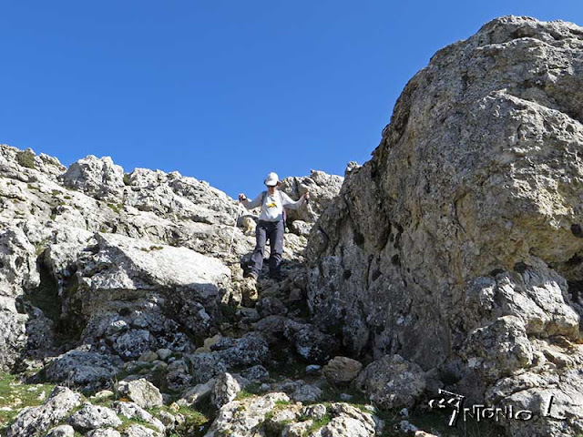 De la anterior cumbre, tras su bajada, iniciamos la subida a la Piedra de los Desesperados, siguiente a coronar. Por no bordearla algo y así coronarla más fácilmente, la ataqué directamente, superando un paso algo delicado, pero que con cuidado no tiene el menor problema.